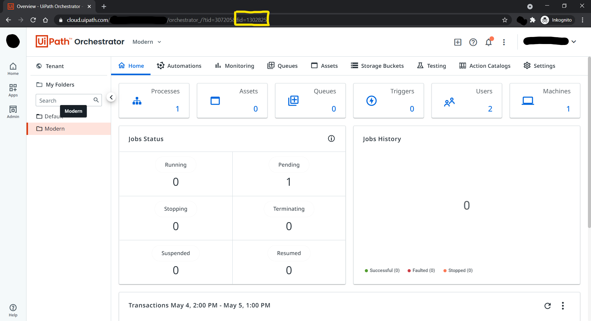 Furthermore, the API of UiPath Orchestrator requires a parameter called organization-unit-id. In short, this id relates to one specific folder in UiPath Orchestrator that contains the RPA bots you want to orchestrate. In order to obtain it, visit your Orchestrator instance, select the folder you want to work with, and fetch the id from the URL’s fid parameter.